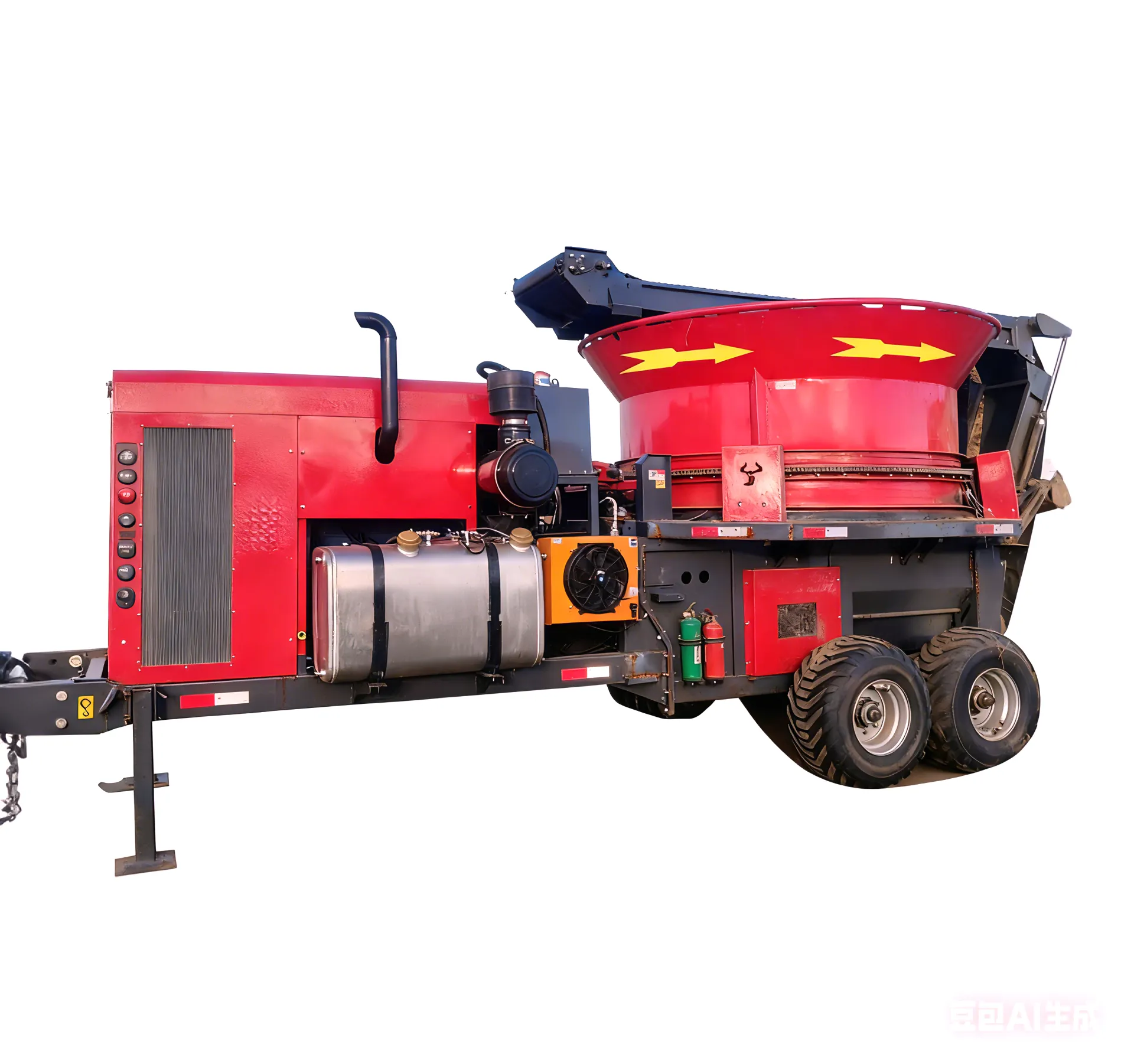 The market for Animal Feed Grass Grinder Machines is competitive, but the 9F-70 distinguishes itself through its specific combination of mobility (via wheels), massive power (191kW), and capacity. Unlike smaller PTO-driven grinders that rely on a tractor's engine, the 9F-70's independent power source saves wear and tear on your expensive tractors.
